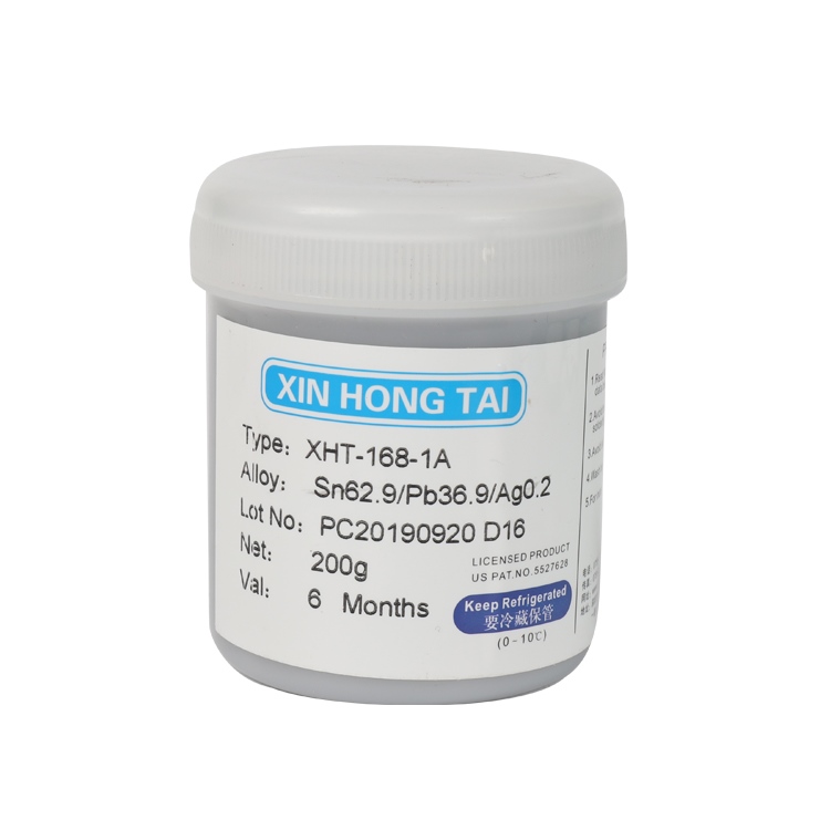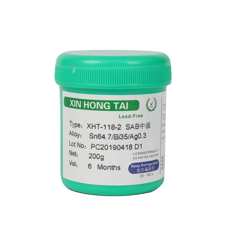 存放溫度要控製在1-10攝氏度的環境下,未開封的保質期為6個月,不可以放置在陽光照射處,焊錫膏在使用前需要將其回溫至25攝氏度左右,一般回溫時間為3個小時左右,禁止使用加熱器使其溫度瞬間上升的做法,使其溫度回複到常溫後需要充分攪拌,一般攪拌時間為3分鍾左右,焊錫膏在印刷基板後,建議將5-6小時內放置零件進入焊爐,連續印刷超過24小時的,為保證產品品質,需要清理空氣粉塵等汙染物,焊錫膏焊接的室內溫度需要控製在22-28攝氏度之間,濕度為30-60%為最佳工作環境。